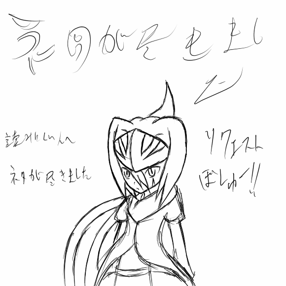 13 April 無題 サバタ様 服は妄想の産物なり それはさておきネタに詰まりました( 何か描いて欲しい! と言う物があれば描かせて頂きます ただし女性キャラは例外なく完成が遅れます( とりあえずネタが溜まるまでは構図とかの練習絵になるかもです では あ、そうそう